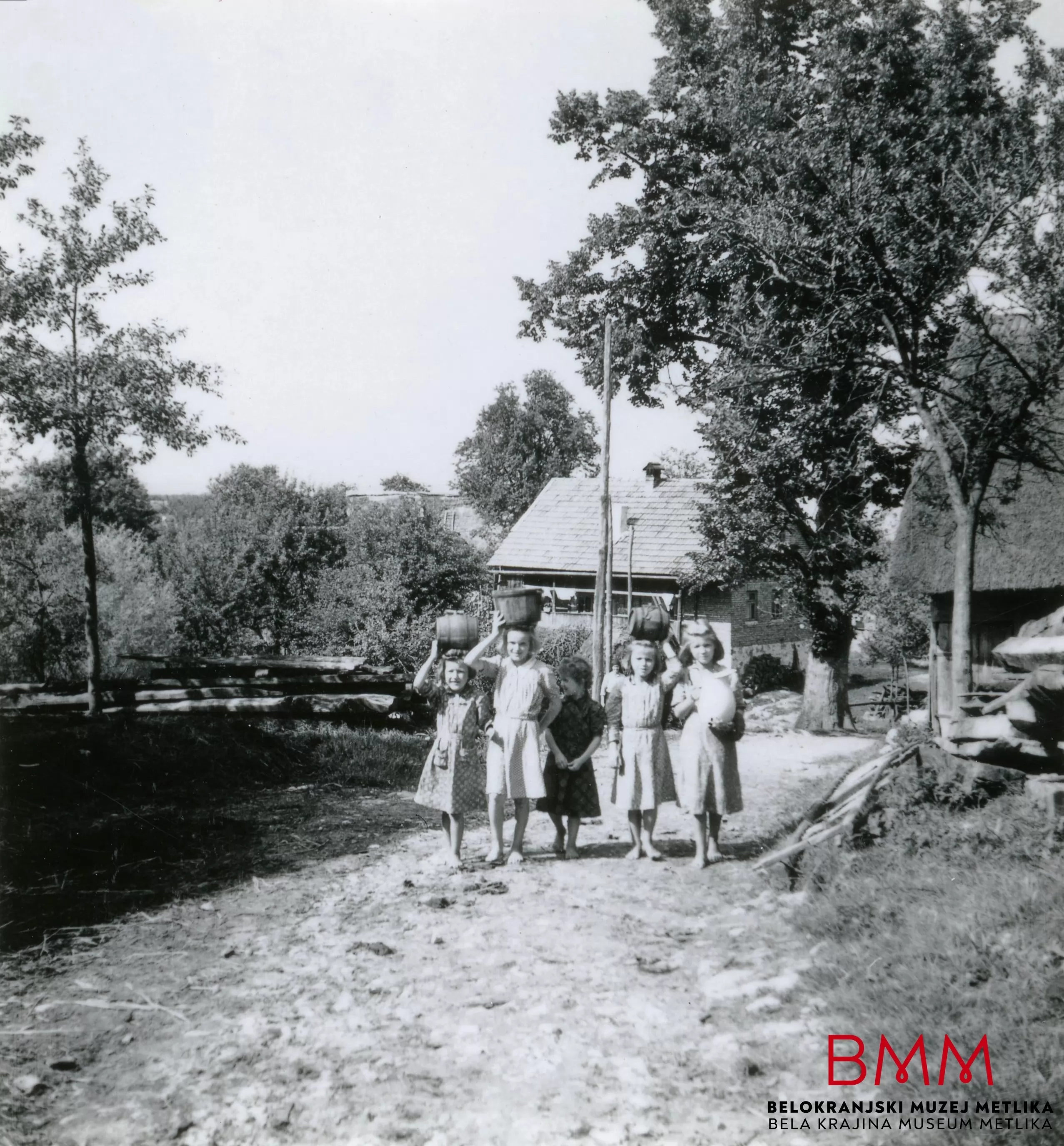 Girls from the village of Nova Lipa are carrying water, 4 July 1954. Photo: Jernej Šušteršič.