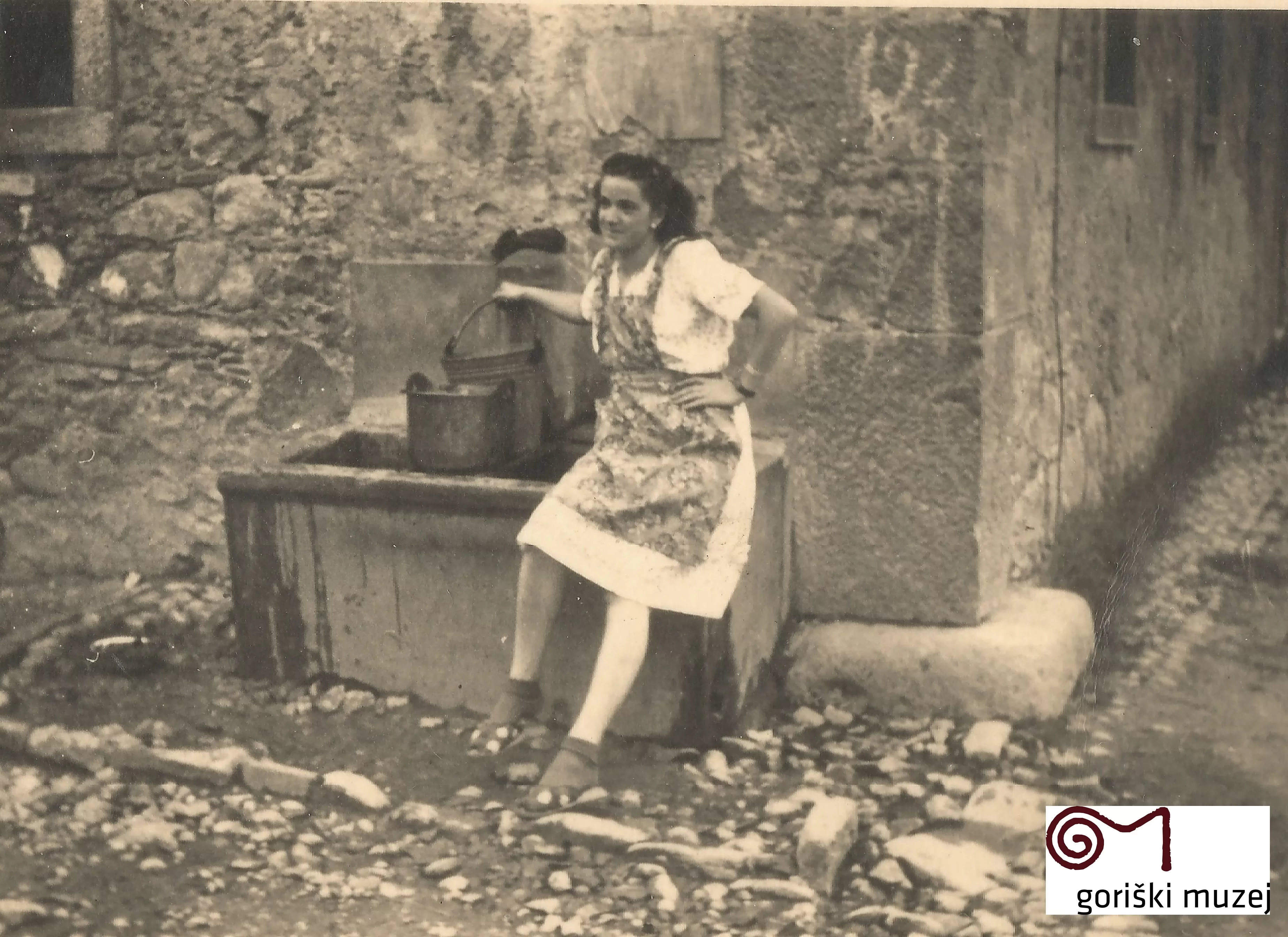 After World War II, the situation in Slavia Friulana was difficult, as the area was almost cut off from the rest of the Friuli region and had no connections. People struggled to make ends meet. The first director of the Goriški muzej, Ludvik Zorzut, loved visiting Slavia Friulana in the 1950s and 1960s, as he was friends with many Slovenians who lived there, including Ivan Trinko. During his visits, he documented various ethnological peculiarities and the life of the local people. His photographic collection includes the photo of a woman from Ažla (Azzida) who came to the village well (water reservoir) with a bucket to fill it with water.