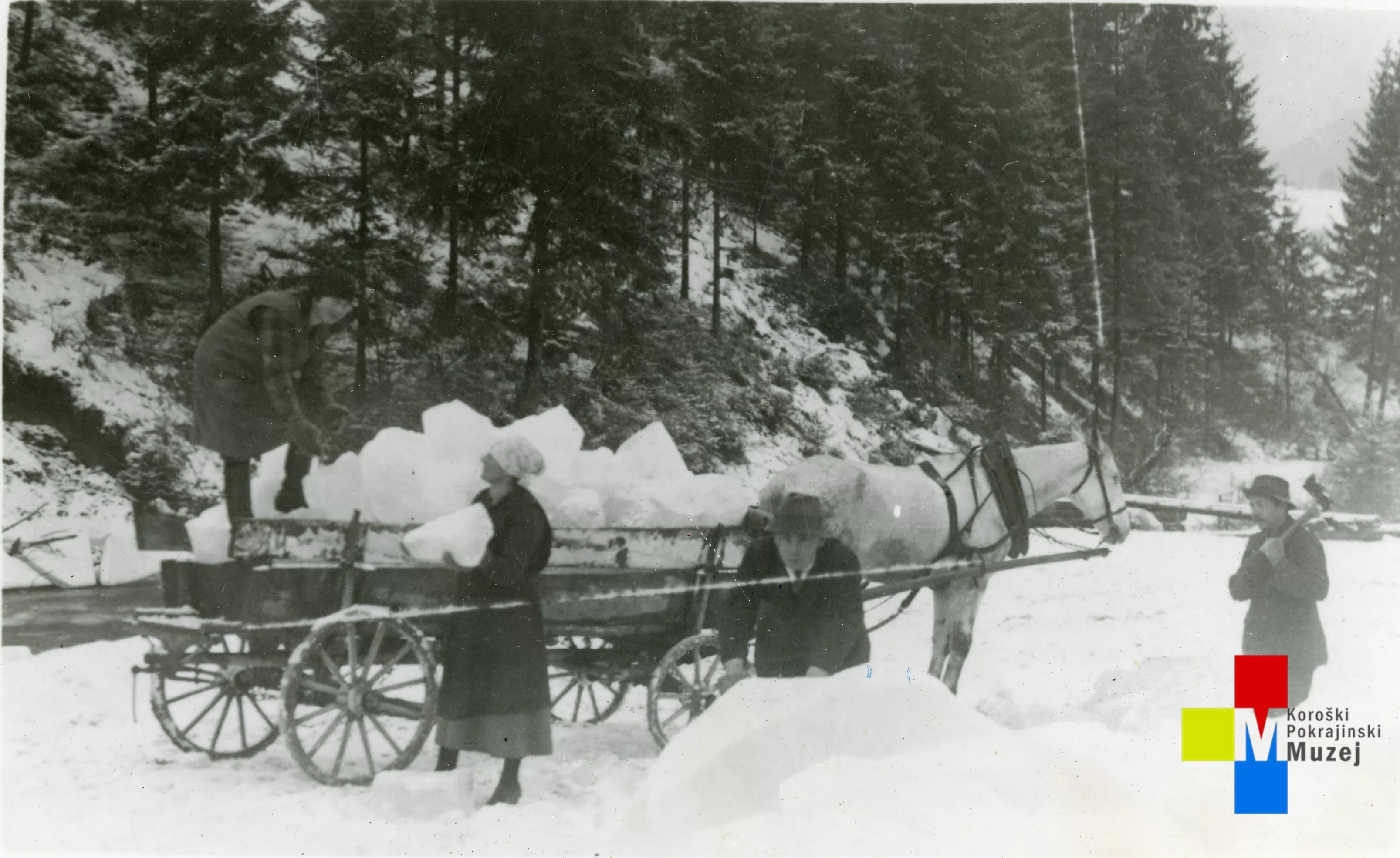 Women are helping out with ice breaking. Ice breaking in Črna, circa 1920.