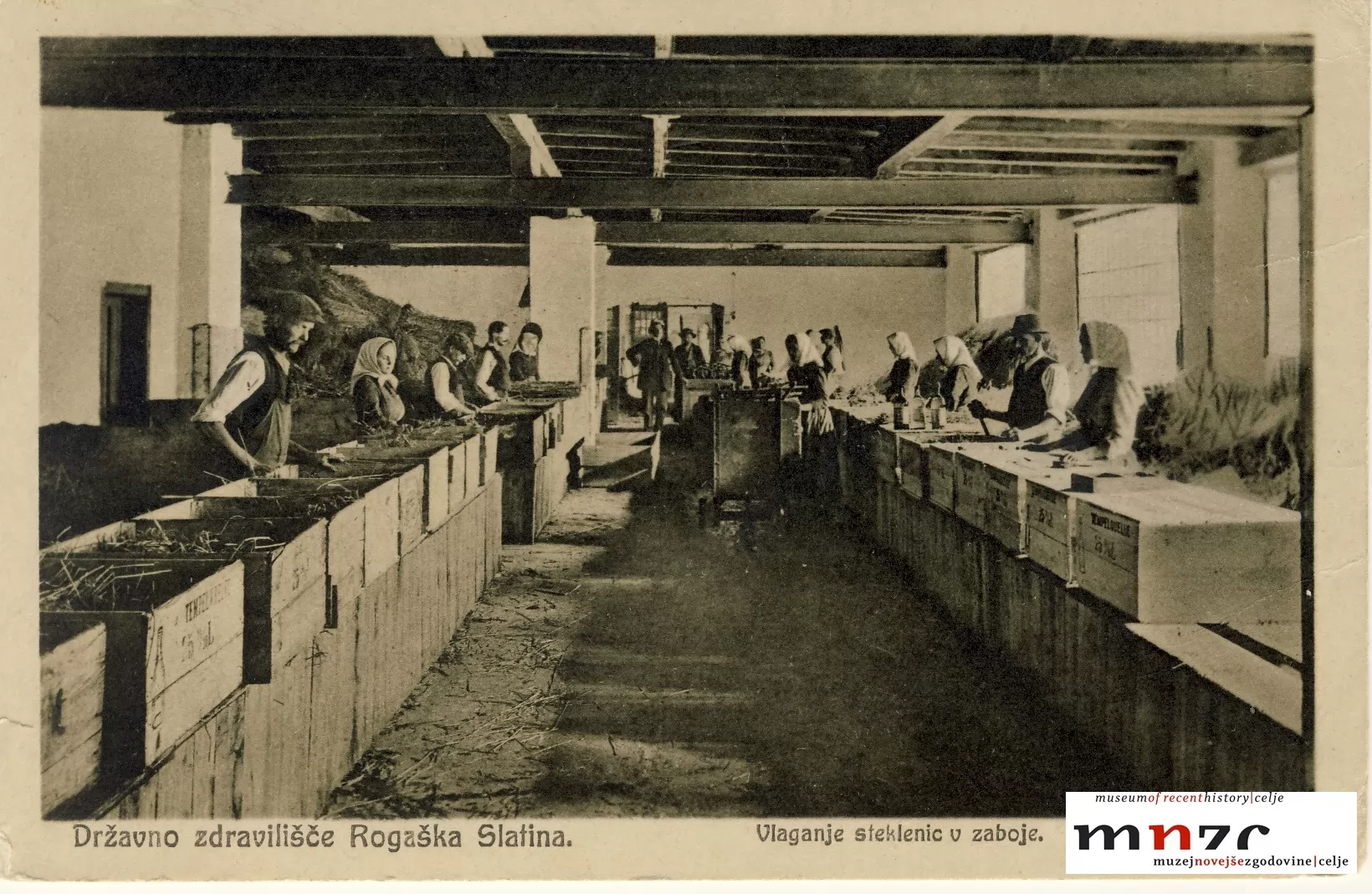 Rogaška Slatina thermal health resort, bottles are being placed in crates, 1920s/1930s.