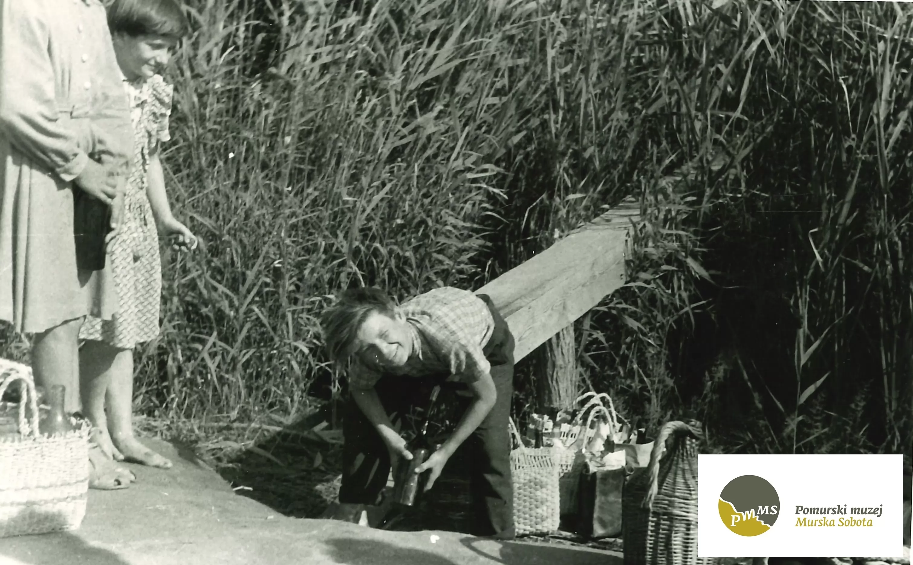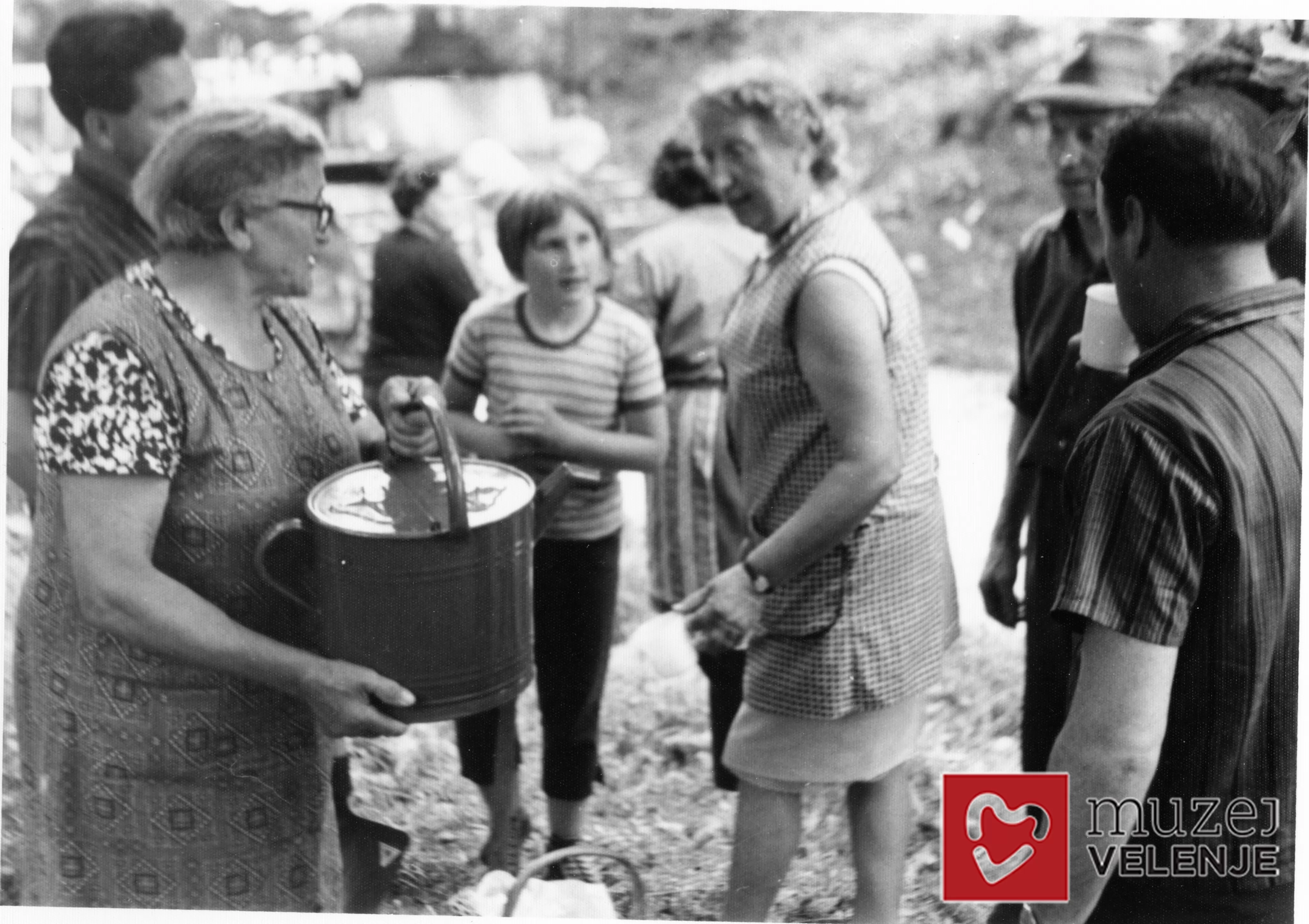 When it came to physical labour, such as digging up the road with pickaxes and shovels, having a constant supply of water was indispensable. More than providing refreshment on hot days and being used for washing dusty hands, water was needed for drinking. During farm work in the fields and vineyards food and drinks were taken care of by a housewife, and in a similar fashion during collective voluntary work, women had the important role of taking care of provisions. A woman often brought water in handy containers to younger and older volunteers. Although the men would also drink home-made ‘tolkec’ (cider) or spritzer, and the children loved home-made raspberry cordial, fresh drinking water was definitely the most thirst-quenching and refreshing drink for the thirsty and tired workers.