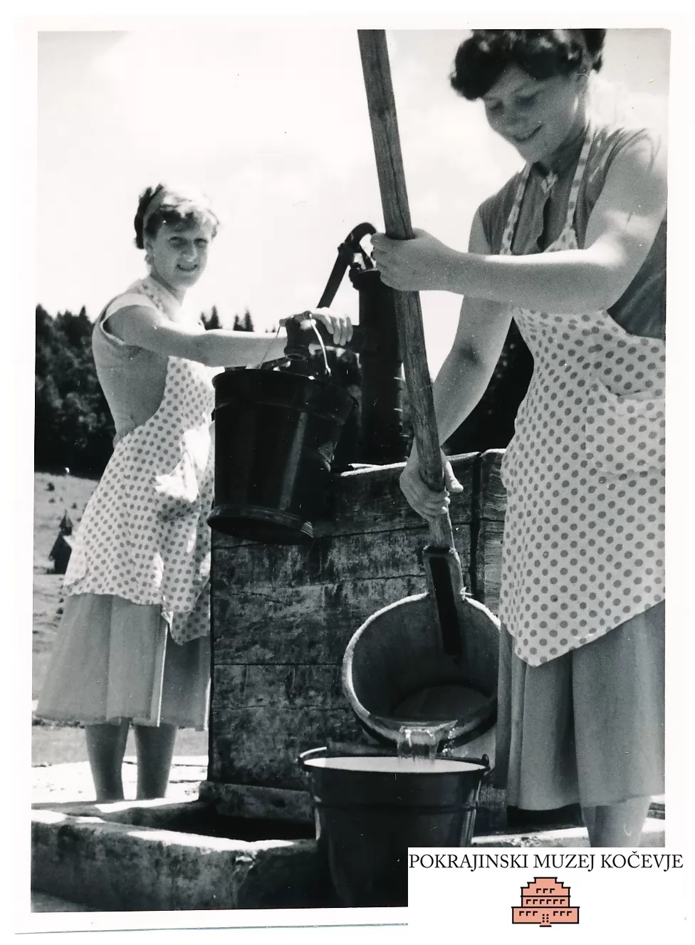Before the water supply system was constructed, the inhabitants of the Posavje region fetched drinking water from springs and wells, from where they carried water in various containers and buckets. Carrying water from wells to houses was a tedious task, although in the town the distances to water were shorter and the way there flatter than in the countryside.