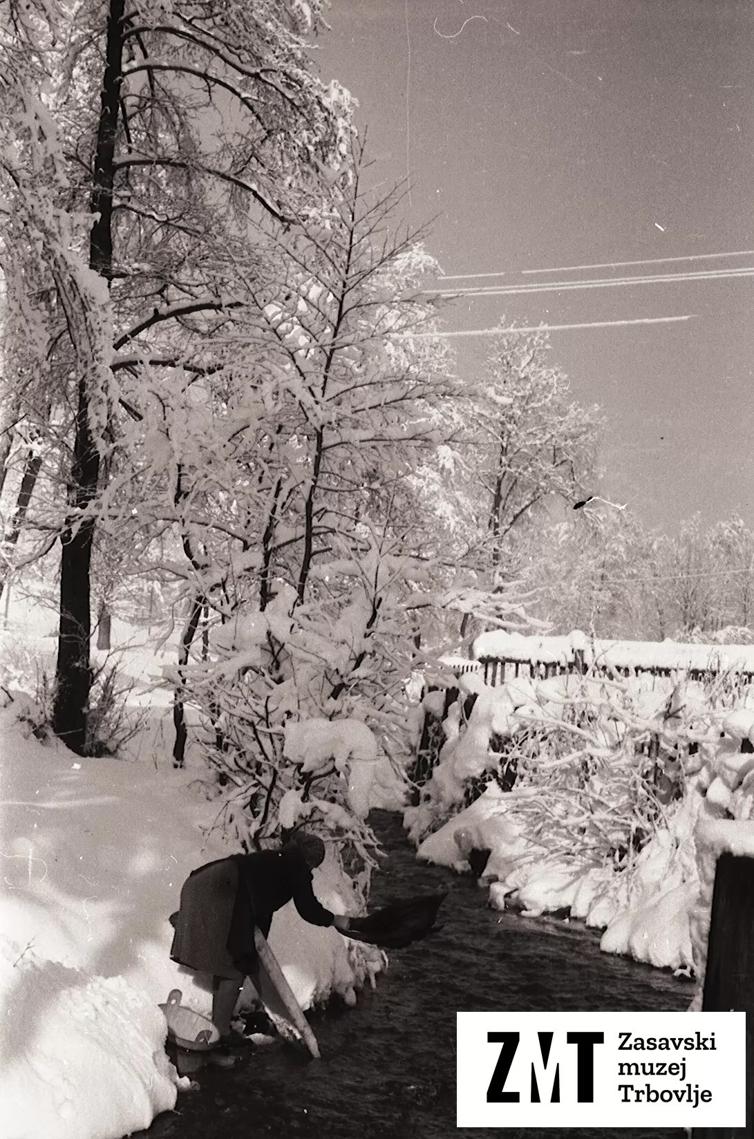 Winter 1936. A woman is doing the laundry in the Trboveljščica stream.