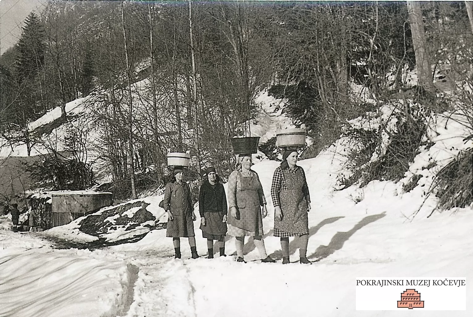 One of the oldest village water supply systems in the Kočevje region was built in Rajndol circa 1842. The water ran from a spring on a nearby hill through wooden pipelines into a village trough in the middle of the village. The inhabitants of the surrounding villages also fetched water from there. A similar and even older water supply system was in place in Morava. Gottscheer Zeitung, April 1965, p. 5.