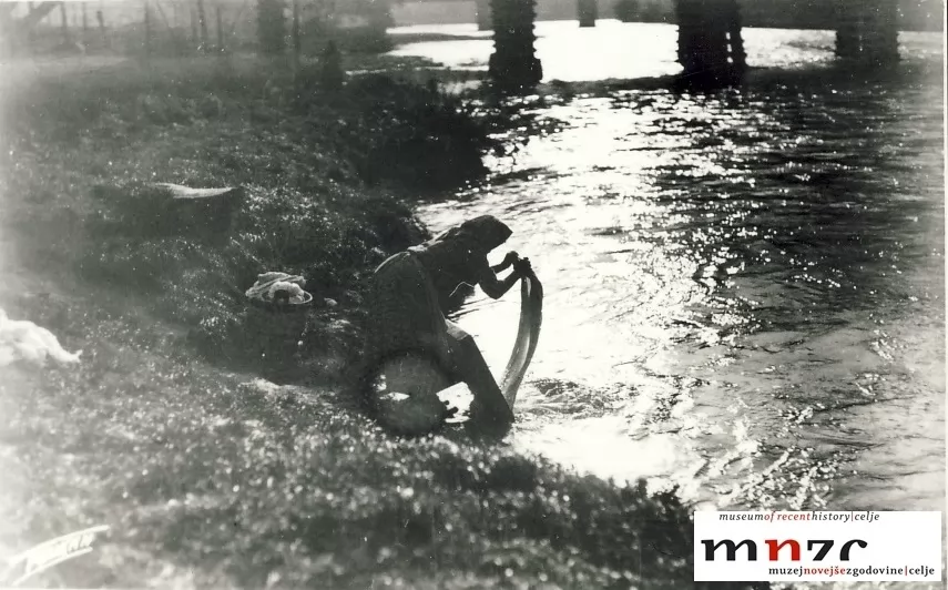 Women are doing the laundry by the Sava river, Celje, 1930s.