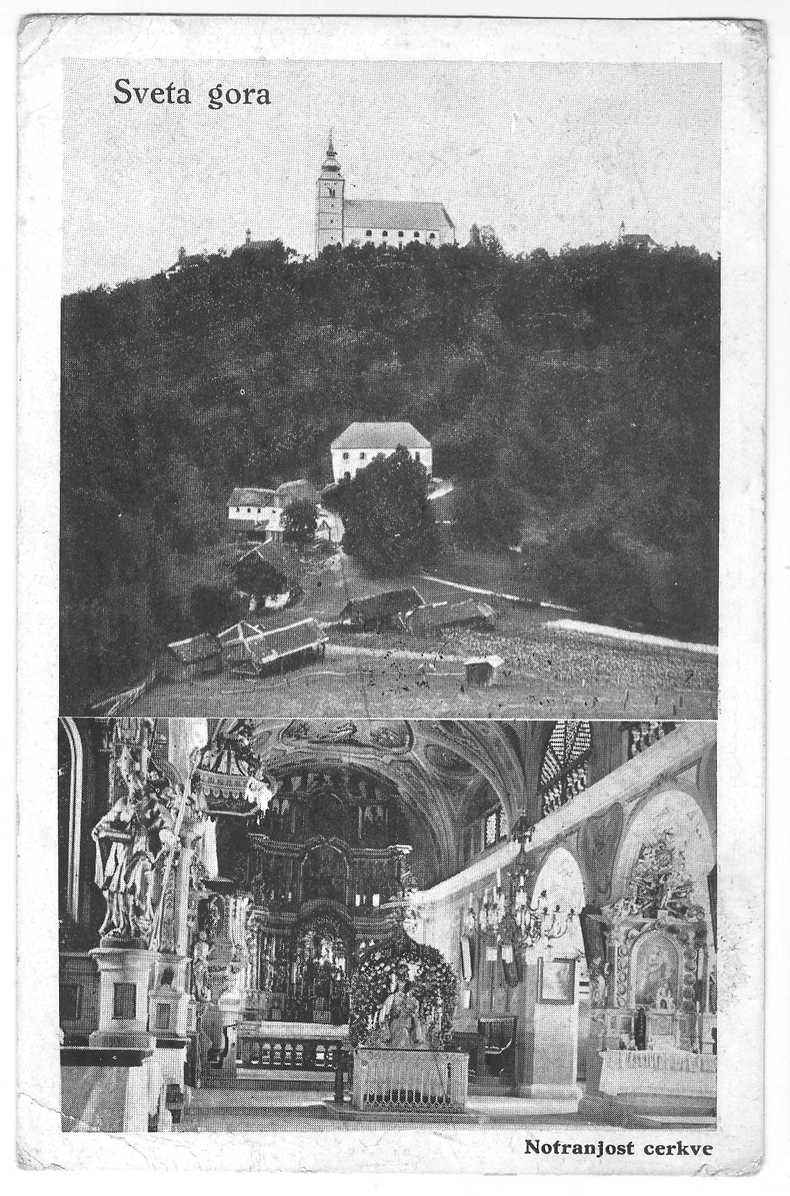 Razglednica Sveta Gora, odposlana: 21.3.1934, založil: Franjo Rautner. Inv. št.: Z4:3805.