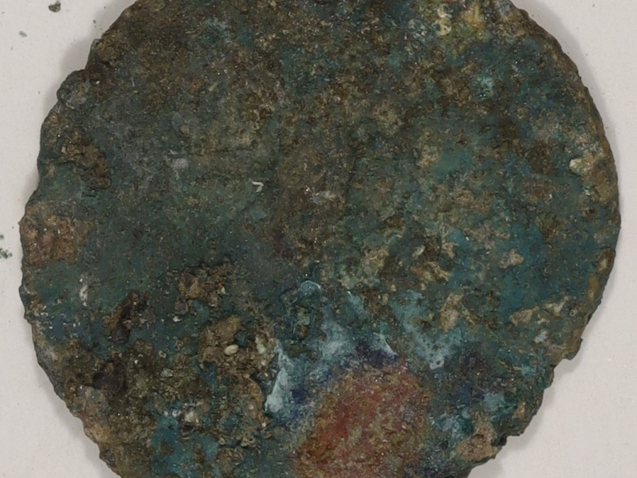Najdišče Drnovo je eno najpomembnejših v Posavju, izkopavanja pa potekajo že od 19. stoletja, predmeti pa se nahajajo v različnih ustanovah. Arhiv najdišča oziroma izkopavanj v letih 2008/2009 hranimo v depojih Posavskega muzeja Brežice, leta 2024 pa smo se lotili konservatorsko-restavratorskih posegov. Predmeti so iz različnih materialov: železa, brona, stekla, keramike, kosti, žlindre in svinca. Obsežni del bakrenih zlitin predstavljajo antični novci. Nekateri so bili v dobrem stanju, drugi so imeli obdrgnjeno sploščeno površino, nekateri so imeli kraste, drugi so bili ohranjeni le v fragmentih. Ravno eden izmed najbolj zanimivih novcev je bil v najslabšem stanju. Prekrivale so ga debele hraste korozijskih produktov, peska, zemlje … Vse to je bilo trdo sprijeto z izvirno površino novca. Trde hraste in druge nečistoče smo odstranjevali s ščetko, destilirano vodo, mikrodletcem in ultrazvočnim kladivcem. Odkrili smo, da ima novec srebrno površino. Srebro je bilo oksidirano (črna patina), zato smo se odločili, da srebrnik spoliramo. Za poliranje smo uporabili kolutno gumico, ki pa je lokalno na majhnem delčku razkrila bakreno osnovo novca. To nam je pokazalo, da je bil novec le posrebren.