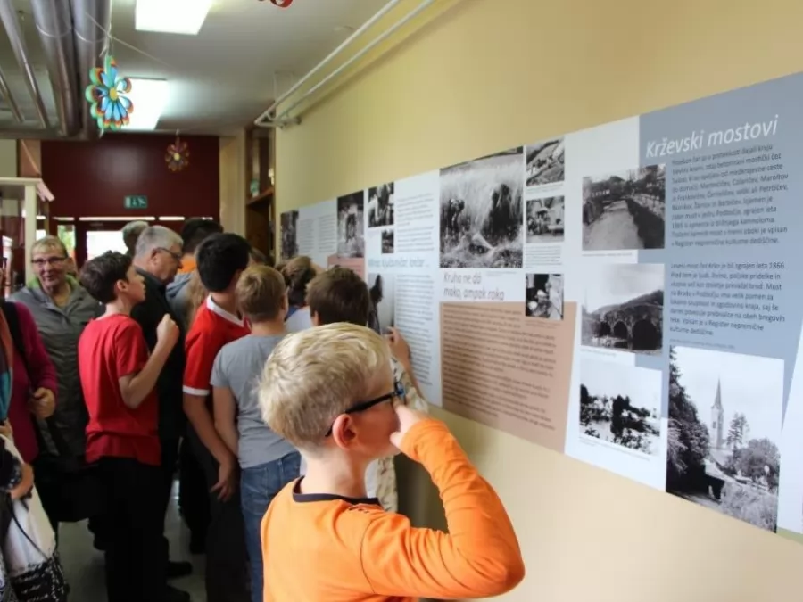 Na razstavi so na osmih panojih panojev predstavljene izbrane teme iz načina življenja Krževcev: vinogradništvo, stavbarstvo, rokodelstvo in obrt, žetev, mlačev in peka kruha, krževski mostovi, poplava leta 1937 in odkritje Levakove jame, znamenja, križi in kapelice, cerkev, poroka in šola. Arheološki del razstave pripoveduje o odkritju Levakove jame ob poplavi in o sledovih prazgodovinske in antične poselitve v njej. V vitrini so bili do 19. 1. 2018 razstavljeni prazgodovinski in antični predmeti, odkriti ob izkopavanjih Posavskega muzeja Brežice leta 1975.